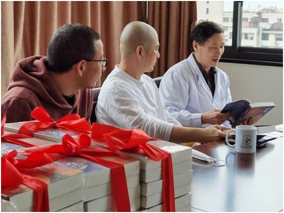 4月22日上午,天空还下着大雨,但大雨阻挡不了金华读书会同学们的爱心与热情,他们一早来到了金华市婺城区人民医院,在医院四楼会议室与医院的领导,党委书记徐增铭,著名中医方国伟医生等人举行了一场生命与健康“爱不落下”分享交流会。金华读书会的明朗同学向医院的领导介绍了金华读书会多年以来致力于学习与传播中华文明的优秀文化,特别是雪漠家道文化和雪漠企业文化的学习与分享,以读书点亮生活,传播大善文化为己任,已多次在学校,企业,社区进行文化分享活动,并取得了很好的效果。
