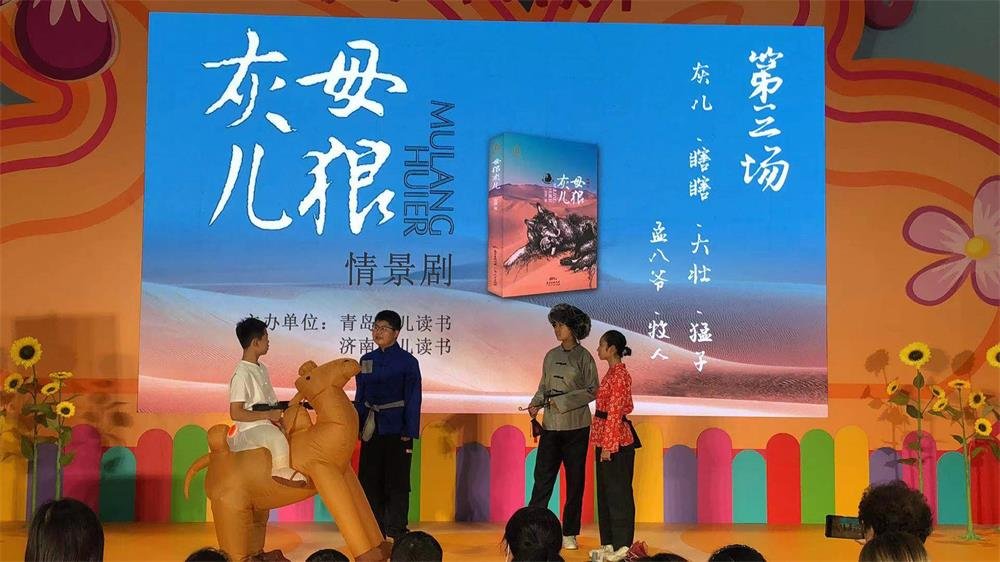 值得一提的是,此次书展把雪漠老师作品《母狼灰儿》搬上了大舞台。青岛少儿读书和济南少儿读书联合编演了儿童剧《母狼灰儿》,作为少儿阅读节的重要节目。活泼可爱的“灰儿”、憨态可掬的大壮、二壮和“瞎瞎”、老练的孟八爷,骑着骆驼、造型独特的“猛子”,活动现场精彩纷呈,台下不少小朋友陶醉在其中。少儿读物本就是书展营销热点,有了舞台表演“壮胆”,《母狼灰儿》的销售更加火爆,现场220册《母狼灰儿》很快就销售一空,供不应求,因为有人预订,库存量竟然出现负数。另外,来自少儿阅读的小朋友还集体朗诵了雪漠老师的《中华奋斗偈》。