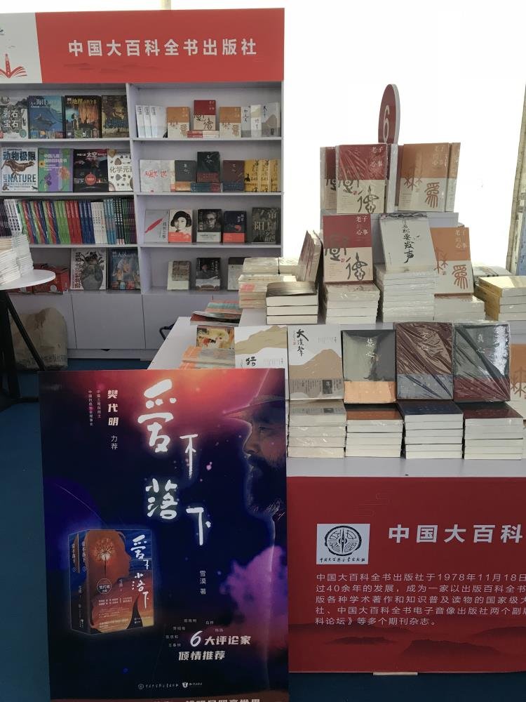 说干就干。当日下午,负责人高学海老师和迟老师迅速与中国大百科全书出版社取得联系及授权,在展位设置雪漠图书参展专柜,选择了200多册雪师中文著作,主推《爱不落下》和《老子的心事》。