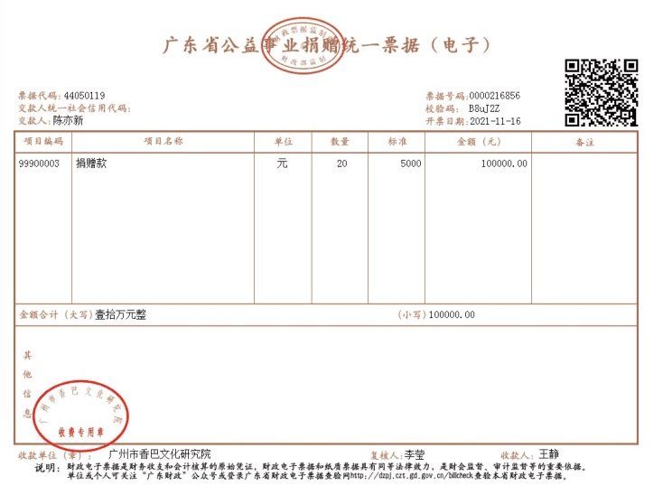 近日,青年作家陈亦新将自己的稿费及“亦新作文”班授课所得的10万元,捐赠于广州市香巴文化研究院,以此助力研究院善文化的挖掘、研究和传播。