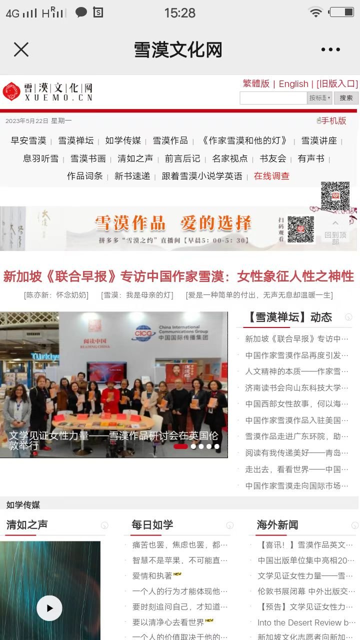 雪漠文化网由中国作家雪漠于2004年10月建立,至今已正常运行达19年,期间经过了两次大的改版,由最初的展示型网站升级为了门户型网站。同时,雪漠文化网还多次举办了雪漠作品研讨会、捐赠活动、征文活动,以及多场雪漠创意写作班培训等。目前已有中文、英文、繁体三个版本,在海内外国家及地区都有很大的影响力。