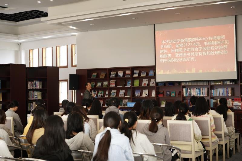 捐赠仪式上由读书会志愿者钱宏彬老师通过PPT形式向大家介绍雪漠作品内及此次捐赠活动的意义。随后,图书馆向宁波雪漠读书会颁发捐赠证书,以示鼓励。(贾亦真)