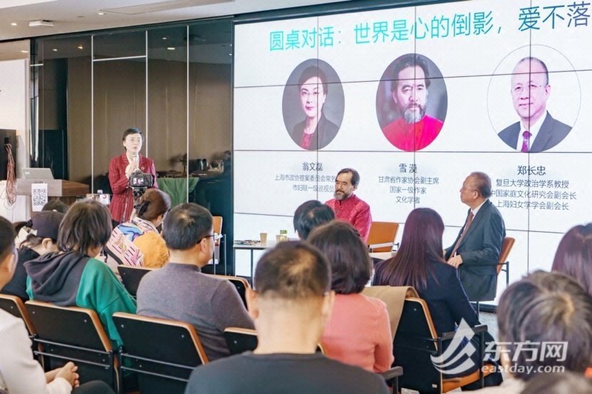 2023年12月29日下午3点,天朗气清,柔风拂面,在上海陆家嘴银城中路88号,国寿金融中心58楼企业展示厅,人头攒动,由协会文创、公益和海鸥专委会共同承办,作家雪漠受邀与上海市政协提案委员会常务副主任、上海市妇联一级巡视员翁文磊女士,复旦大学政治学系教授、中国家庭文化研究会副会长、上海妇女学学会副会长郑长忠先生相约“下午茶”,进行了一场别开生面的圆桌对话,围绕“爱不落下”“世界是心的倒影”“心定气闲•迎接2024”等主题畅谈创作体验、阅读人生。