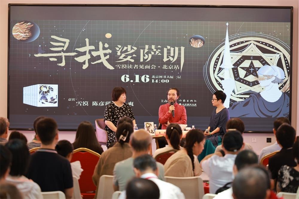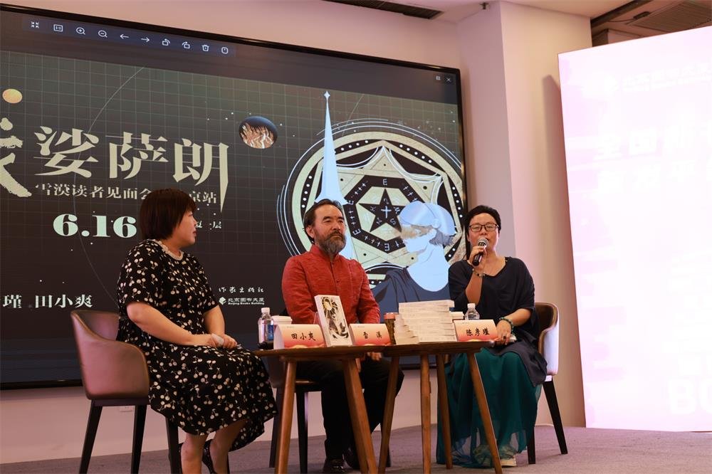 6月16日下午,“寻找娑萨朗”雪漠读者见面会在北京西单图书大厦举行。《娑萨朗》作者、甘肃省作协副主席、著名文化学者雪漠与本书策划编辑陈彦瑾、责任编辑田小爽一起,共话《娑萨朗》的创作出版故事。