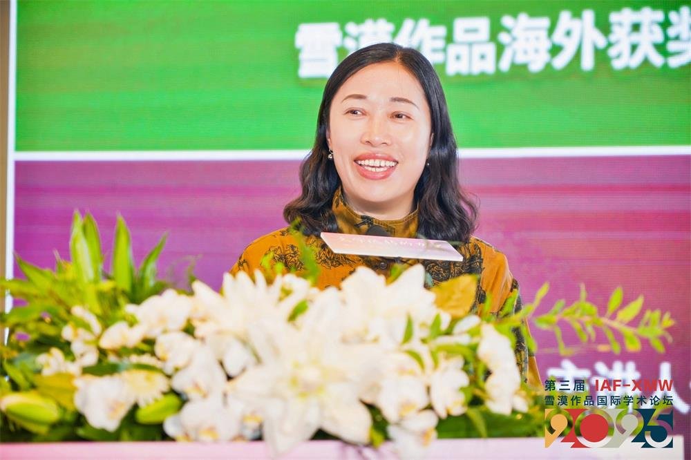 宁波大学浙江翻译研究院执行院长、宁波大学外国语学院教授辛红娟介绍分析雪漠作品海外获奖情况,探讨了文学大奖影响文学经典化的过程,从学术价值、教学价值、经济价值、社会价值等角度重点阐释了雪漠文学作品的经典性与经典化之路。雪漠出版文学文化著作160余部,目前已翻译成20多种语言,在国外出版发行70多种图书,在亚马逊的最畅销书排行榜多次荣登榜首,荣获2024美国“独立出版奖”“纽约市图书大奖”“国际影响力图书奖”“斯里兰卡奖”(国家文学奖)等重要奖项。“雪漠现象”成为国际书展上一道重要风景线,引发上千家国际媒体广泛报道。