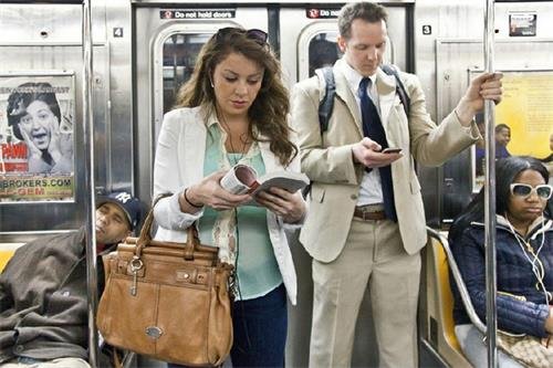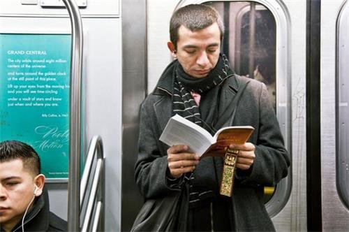 对纽约人来说,匆忙的生活中总能挤出一些零散的时间来看书,而最好的地方就是地铁。当你走下纽约地铁站,就会微微震惊:几乎每一节车厢都有看书的人,或坐或站,只要不是极度拥挤,都会旁若无人看书的身影。