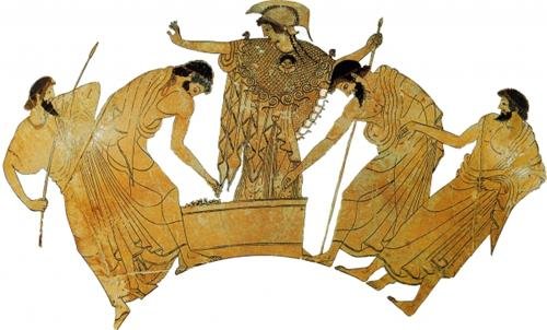 古希腊人参加每年在雅典城举行的泛雅典娜节,这是庆祝丰收及新年的节日。届时,人们要向雅典娜奉献一件崭新的绣袍和动物祭品,并举行盛大的体育竞技和音乐比赛