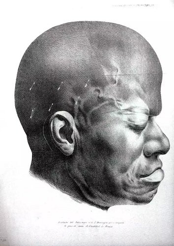▲《论人类的骨相比较》中圣多明哥一个土著人的脸孔
