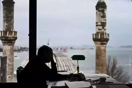 我几乎不敢碰父亲的手提箱或是打开它,但我知道里面的一些笔记本写了什么。我看见过父亲用其中一些笔记本写什么东西。这并非是我第一次知道这个手提箱里装的沈甸甸东西。父亲有一个很大的书房,他年轻的时候,在上世纪四十年代末,在伊斯坦布尔,他希望成为一个诗人,还曾把法国诗人瓦雷里(VALERY)翻译成土耳其语,但是,在一个贫穷的没有几个读者的国家写诗,这样的文学家的生活不是我父亲要过的生活。父亲的父亲——我的祖父——是一个富有的商人;所以我父亲的童年少年都是过着舒适的少爷生活,他不想为了文学为了写作忍受艰难。他喜爱美仑美奂的生活,这我可以理解。