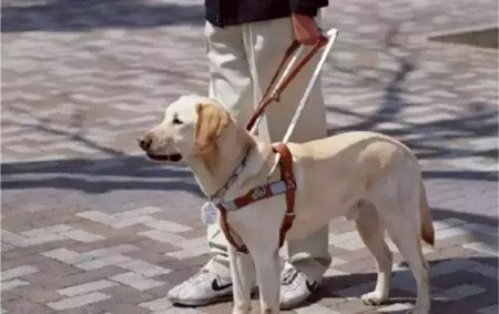车上,人们都在默默地打量着憨态可掬的导盲犬:即使在急转弯的时候,也摇头晃脑地努力保持直视前方的姿态,神情专注。与平日里对待宠物狗的情形不同,没有人试图靠近去抚摸它,或是用手机拍照。我旁边那位原先让座的小男孩,慢慢举起手中啃了一半的面包,想上前去喂它,被妈妈及时制止并悄声耳语:“它在工作,有自己的职责,不要打扰它。”听到“工作”一词,小朋友立刻缩手退了回来。