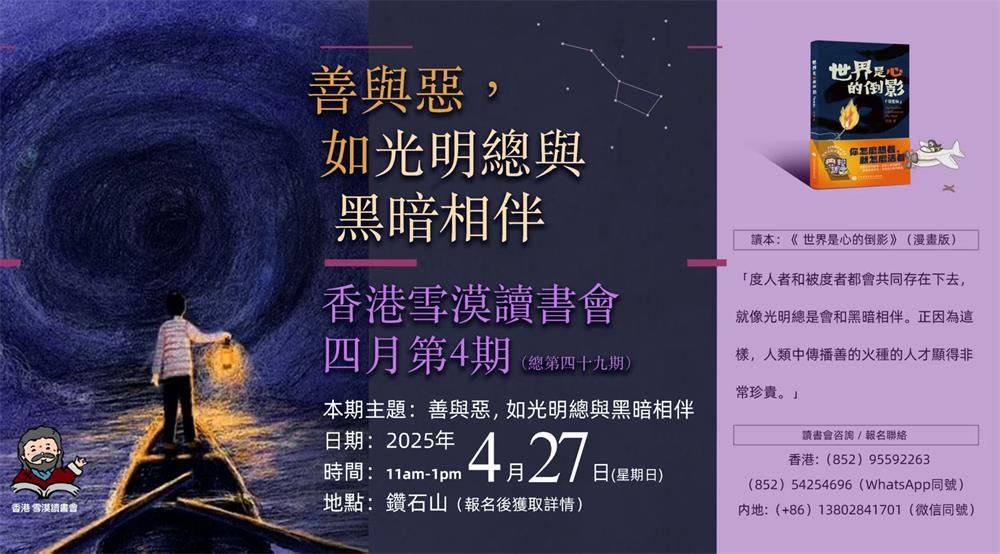 关于“善与恶”的延伸话题,敬请关注4月27日的香港雪漠读书会。诚邀您相聚。(刘一凡)
