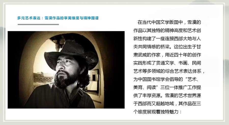 本次研讨会不仅为全国图书馆界提供了艺术阅读推广的经验交流平台,也推动了雪漠作品等优秀文学经典的传播,助力全民阅读事业的高质量发展。未来,中国图书馆学会将继续深化阅读推广工作,促进美育与阅读的深度融合,为构建书香社会贡献力量。