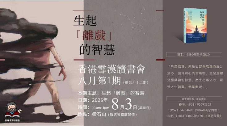 活動|生起「離戲」的智慧——香港雪漠讀書會八月第1期(總第六十二期)