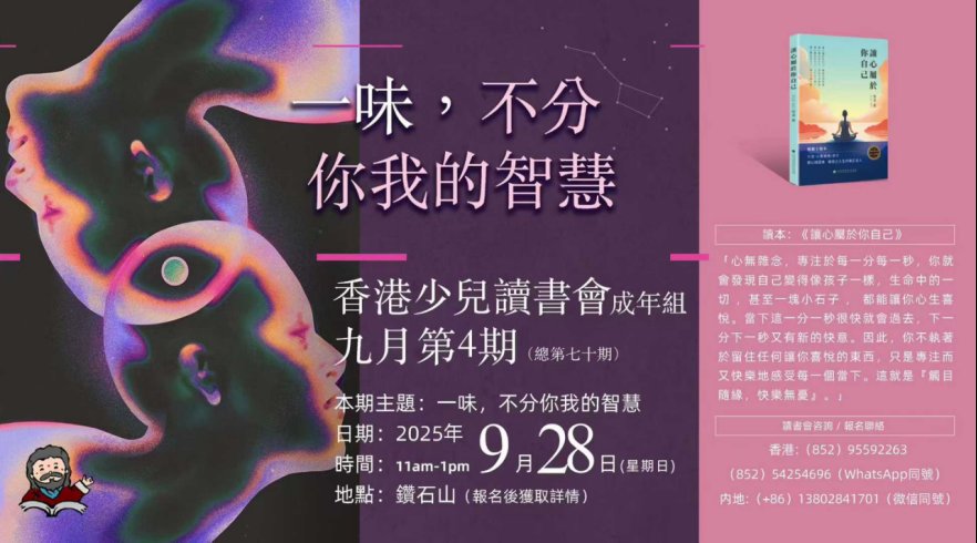 活動| 一味,不分你我的智慧——香港少兒讀書會·成人组九月第4期(總第70期)