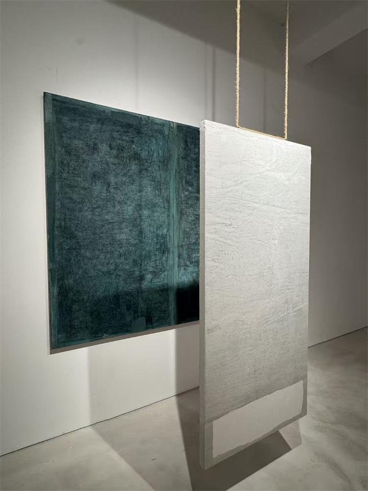 当观众站在“青铜系列”作品前,被那些由宣纸拼贴、墨色积淀所模拟出的千年铜锈所触动时,所感知的已非物象本身,而是材质在时间中自然风化的生命感。“我喜欢青铜,正是因为它的美来自沧桑。青铜的颜色很好看,但非人为,全是自然风化出来的。”查国钧认为青铜的自然风化和水墨的自然渗化是相通的。