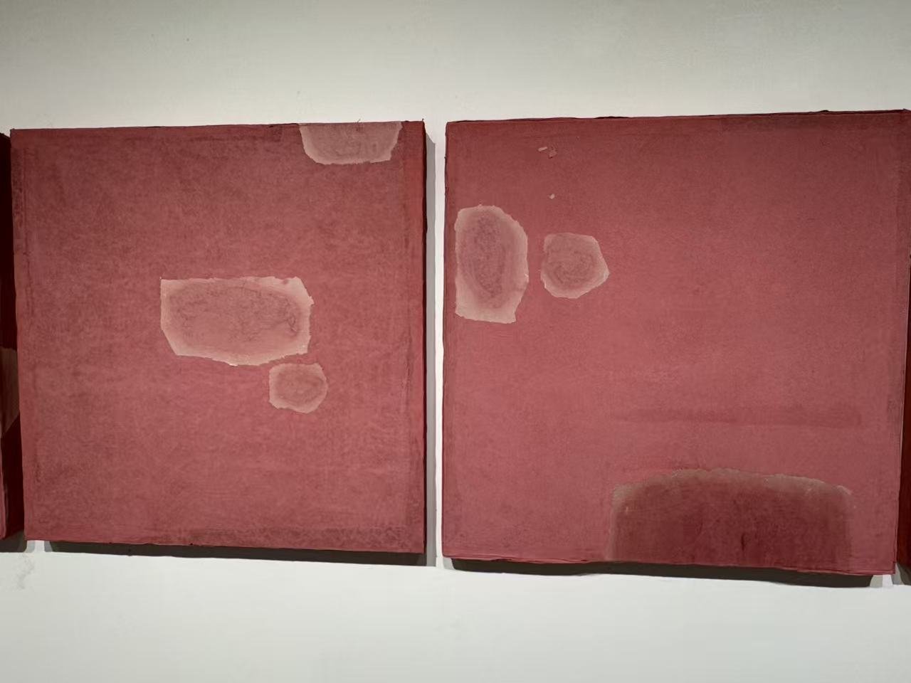 的确,走进展厅,观众首先注意到的并非具象的山川草木,而是水、墨、色在宣纸纤维中自主渗透、叠合所生成的“景深”。画面中几乎不见笔线勾勒的轮廓,取而代之的是墨色氤氲的层次、纸本残片拼贴的肌理,以及色彩如呼吸般在纸面延展的轨迹。艺术家将这一过程称为“水墨的架构”:它不再依附于物象叙事,而是回归到水与墨交互的物理属性,在可控与偶然之间捕捉材质本身的表达力。