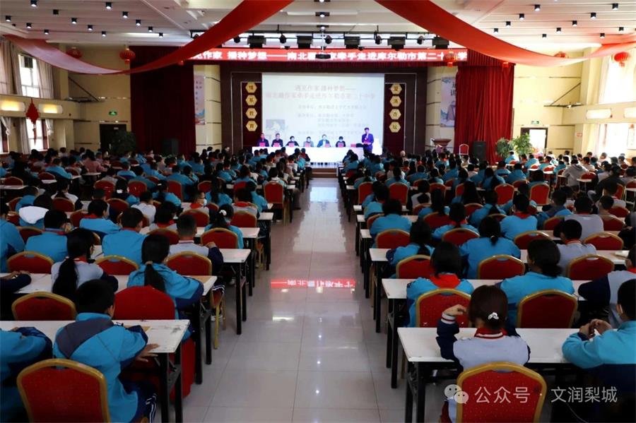 2025年11月4日,库尔勒市第二十中学文学交流活动在此举行。活动由库尔勒市文联主办,库尔勒市作协、克拉玛依市(油田)作协及库尔勒市第二十中学共同承办,雪漠西域文化艺术研究中心读书会与巴州朗诵艺术协会协办。中国作协会员、梨城作家陈耀民,克拉玛依市(油田)作协主席、诗人申广志,巴州作协名誉主席李佩红等知名作家出席,与八年级420余名师生齐聚一堂,展开交流。