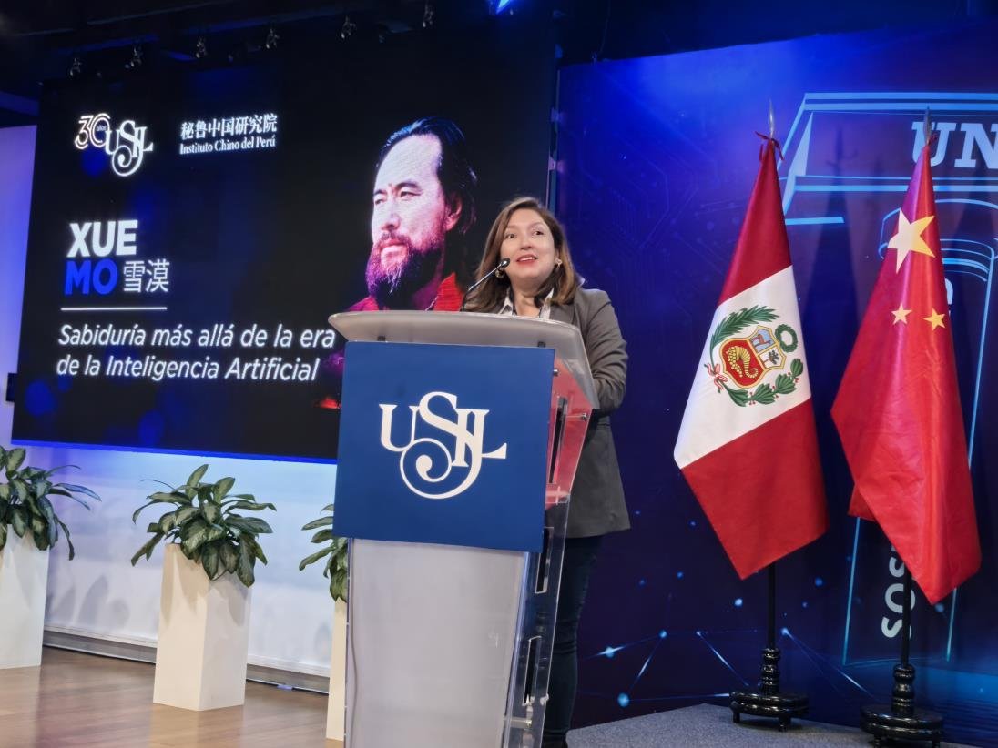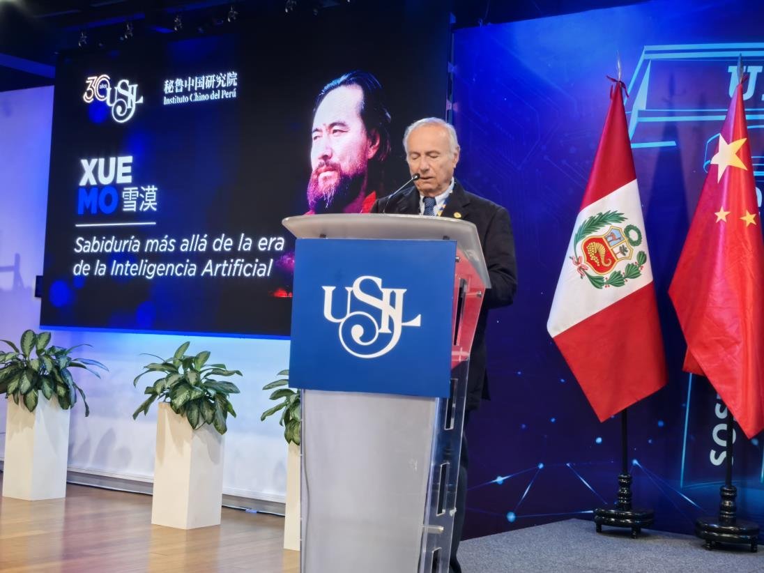 2025年11月10日下午5时(当地时间),中国著名作家、文化学者雪漠应邀出席圣伊格纳西奥•德洛约拉大学秘鲁中国研究院成立一周年庆典,并发表题为“AI时代的智慧超越”的主旨演讲。大学校长豪尔赫•塔拉韦拉(Jorge Talavera)、大学人文系院长贾斯托•巴尔马塞达博士(Justo Balmaceda)、大学语言研究中心主任罗西奥•巴尔达拉戈(Rocio Baldárrago)等校方领导与众多师生、文化界人士共同出席了此次活动。智利麦哲伦大学孔子学院院长暨北京语言大学拉丁美洲研究中心主任孙新堂教授担任翻译。