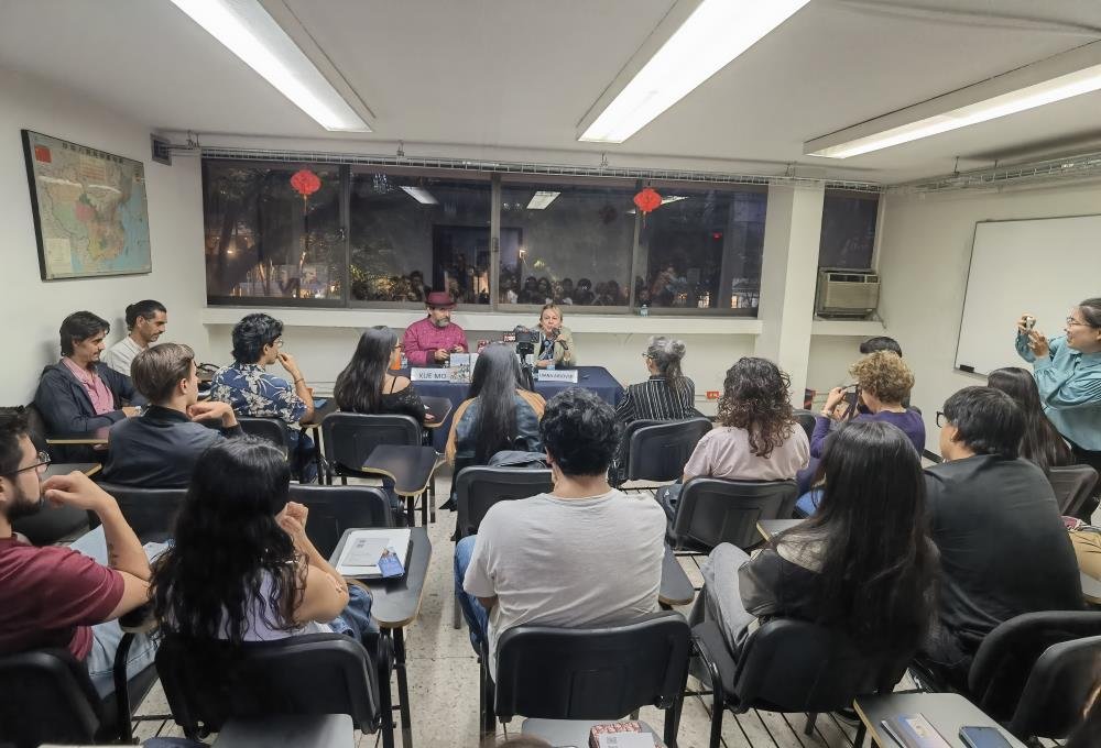 墨西哥国立自治大学孔子学院墨方院长珍妮(Jenny Acosta)女士,哥伦比亚汉学家、塔德奥大学亚太研究中心研究员罗一人(Pablo Rodriguez Duran)先生等参加交流,活动由墨西哥汉学家、翻译家、墨西哥学院教授莉莉亚娜主持并担任翻译。