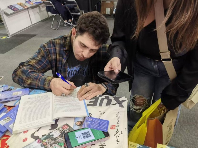 书展期间共吸引超过90万名参观者,汇聚来自约68个国家的2800家出版机构。雪漠作品首次亮相便在西语读者中引发热潮。《世界是心的倒影》《雪漠诗说老子》(西语版)以及中文版动物小说系列、散文随笔等数百册图书,在四天内全部售罄。读者纷纷在书页上写下祝福,表达对作品的喜爱。