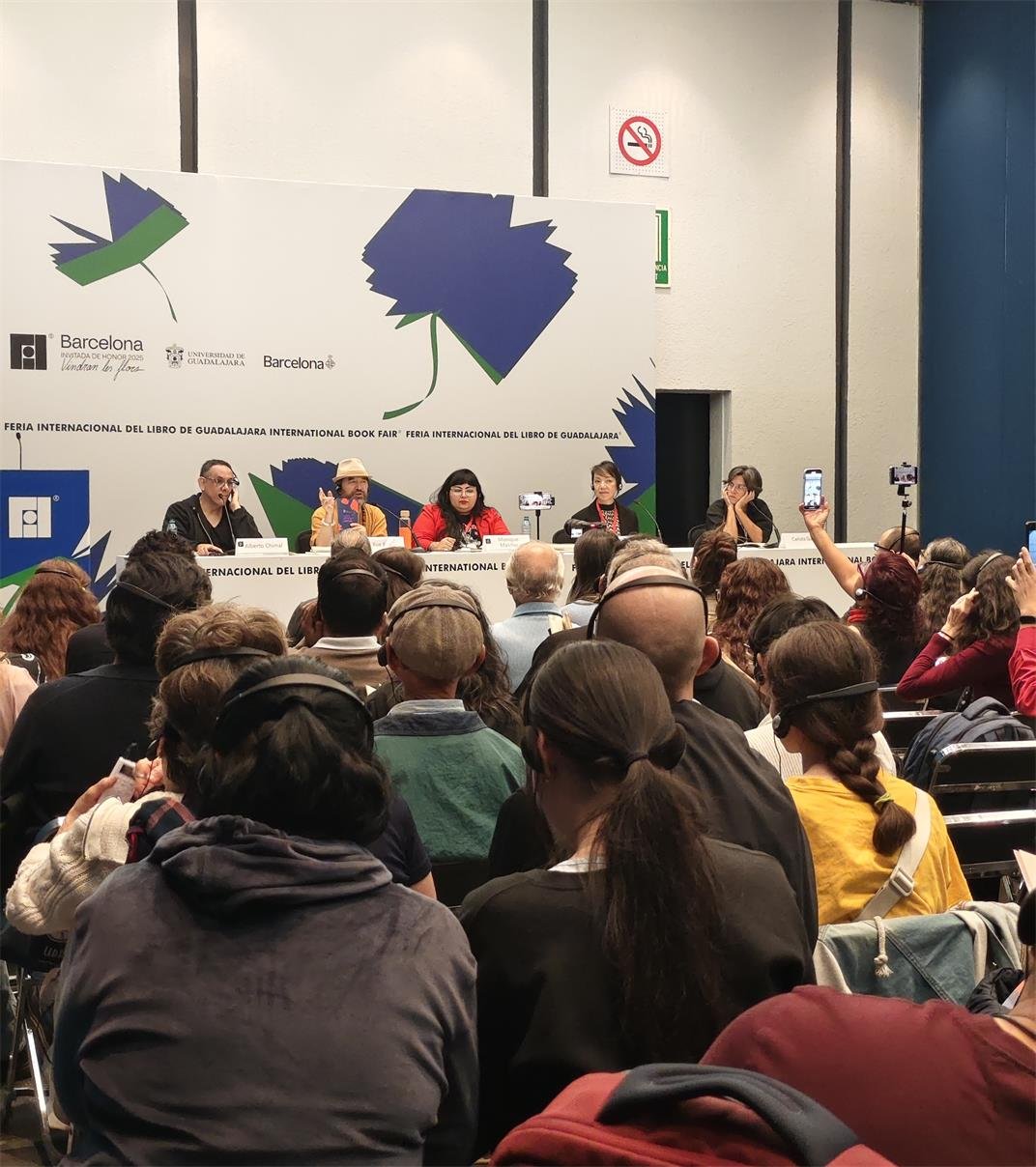 2025年12月5日晚19:30(当地时间),第十九届瓜达拉哈拉国际书展(FIL Guadalajara)重要活动单元“国际短篇小说家大会”在展馆3号厅举行。中国作家、文化学者雪漠与西班牙作家卡洛塔•古尔特(Carlota Gurt)、阿根廷作家亚历杭德拉•神谷(Alejandra Kamiya)、巴西作家莫妮克•马尔谢尔(Monique Malcher)同台,展开了一场跨越语言文化与地域的文学对话。论坛由墨西哥作家阿尔韦托•奇马尔(Alberto Chimal)主持。