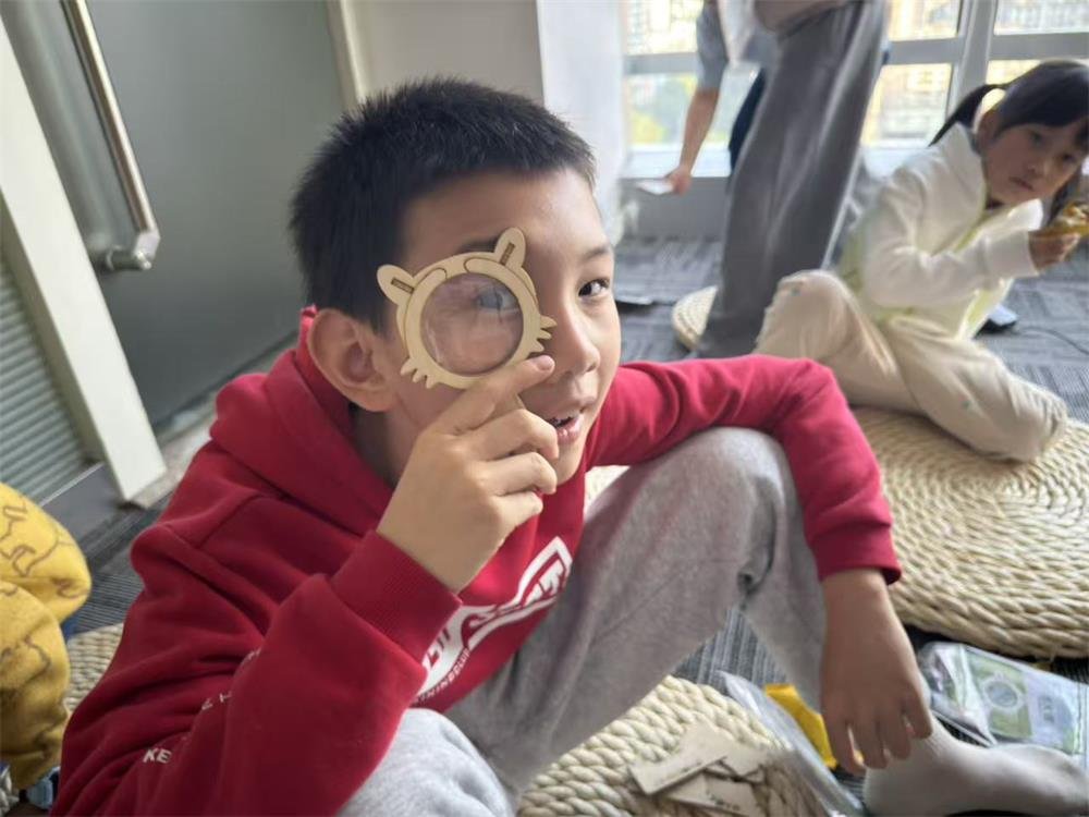 活动尾声,孩子们动手制作放大镜,在镜面成像的奇妙变化中,亲身体验“视角转换”如何改变对世界的观察与理解——如书中所说:“老子的目的是让你拥有一双观察世界的慧眼,发现大自然当中那些有有无无的现象……坦然地接受生命当中的一切,过得非常开心了。”(摘自《雪漠说老子:让孩子爱上〈道德经〉》第一辑P30)。