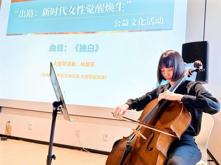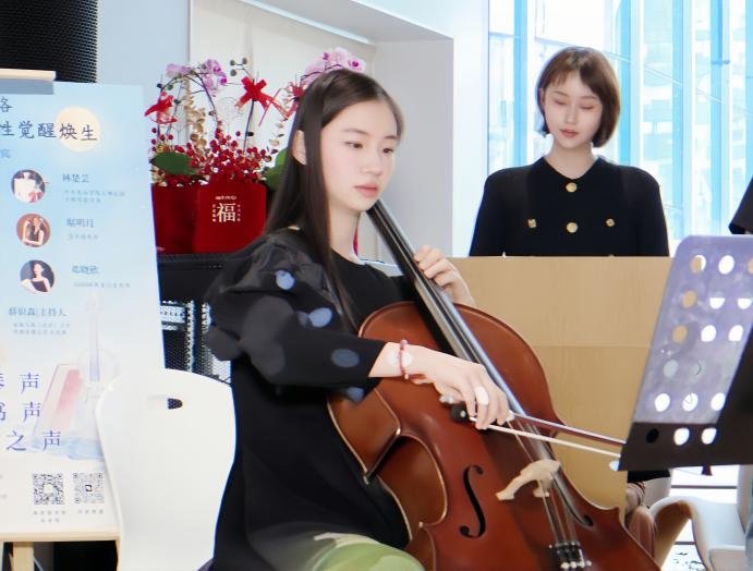 林楚芸演奏意大利作曲家索利马的《独白》。大提琴的旋律沉静而深邃,仿佛是每个女性内心深处那些需要被听见的心声——那些独自前行的时刻,那些需要力量的瞬间。