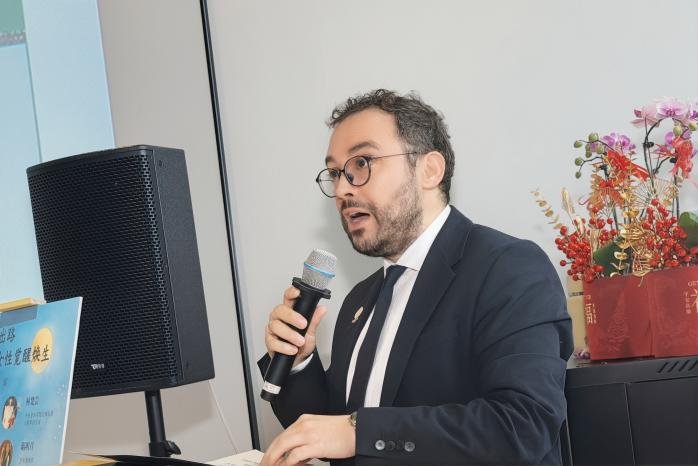 西班牙汉学与中国学协会秘书长苗志皓来到现场并登台致辞。他表示,作为一名汉学家,雪漠作品让他看到文学跨越语言的力量。他谈到,《出路》的题目本身就是答案:无论哪个时代,女性追求幸福生活,真正的出路就是智慧觉醒。雪漠笔下那些女性形象——兰兰、莹儿、雪羽儿、紫晓——都以无我、利他、关爱的精神,为困境中的女性提供了一种精神力量。这是一个前所未有的时代,无论是在西班牙还是在中国,女性都在以独特的智慧和坚韧,书写着属于自己的故事。