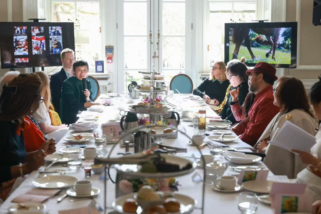 著名英籍华裔作家、英国皇家艺术家学会院士张怀存女士,以及文学与文化双栖作家雪漠先生作为特邀嘉宾发表了主旨演讲。与会嘉宾还包括:皇家马斯登癌症慈善机构首席执行官Stephanie Revell与Alex Gray,英国著名作家莱斯先生,铅笔树理事、英国官佐勋章获得者Mei Sim Lai女士,英国皇家艺术家学会院士Mick Davies先生,英中文化交流协会会长Li Hai女士,英籍作家及翻译家Hai Yao女士,英国Regain慈善机构代表Sarah女士,乌克兰儿童基金会代表Imogen Payter与Lisa Nagle女士等。论坛在主持人、弗蕾亚基金会理事贤博士的欢迎辞中拉开帷幕。来自全球各地的思想领袖和实践者们分享了他们的见解与故事,为这个春日午后注入了温暖而深刻的力量。