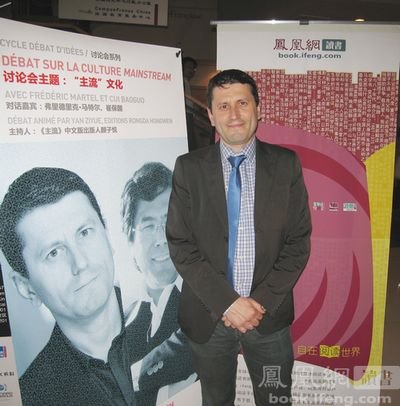 2012年6月12日下午,在北京的法国文化中心,《主流》的作者弗雷德里克•马特尔与清华大学新闻与传播学院副院长、中国社科院《传媒蓝皮书》主编崔保国教授以及国际文化战略研究专家、《国际文化版图研究文库》主编颜子悦先生就“主流文化的全球传播”展开了一场精彩的对话。这场对话活动由法国驻华大使馆和北京融达弘文文化艺术传媒有限责任公司联合主办,凤凰网读书频道独家媒体支持。
