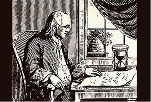 富兰克林还在英国的印刷厂工作时,英国的印刷工人大多是酒鬼,因为他们认为喝酒可以增长气力,但是富兰克林不同,他认为节制饮食能使人头脑清醒、思想敏捷、提升效率,所以他不仅不喝酒,还是个素食主义者,于是工厂里的英国佬都嘲弄他是“喝水的美洲人”。尽管喝水不喝酒,富兰克林还是特别努力、排字速度也最快,因此总是被指定作一些急件,所以他的工资也特别高。
