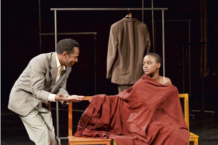 《情人的衣服》改编自南非黑人作家康·塔巴的同名短篇小说。这是一部深刻控诉上世纪50年代南非种族隔离制度的作品。第一版剧本1993年在约翰内斯堡的市场剧院被搬上舞台,1999年布鲁克将该剧引入巴黎的北方剧场,并首次上演了法文版。此次来华演出的是今年4月才创作完成的英文版,由法国作曲家弗兰克·柯罗兹克和导演玛丽-海伦·艾蒂安共同参与创作。该剧的情节很简单:年轻男子菲勒蒙回家时意外地发现自己的妻子玛蒂尔达和一个陌生人躺在同一张床上。他当时没有激烈反应,而是藏进了衣橱。情人穿着内衣仓皇逃离,却将西服忘在身后。丈夫告诉妻子,这件衣服将从此陪伴着他们一起生活,从早到晚。他说到做到,开始了无情的报复。表面上看,这是一出典型的三角爱情悲剧,展现的是特定年代黑人遭遇的种族歧视和压抑的社会氛围,但创作者显然没有停留在社会问题剧层面,而是以幽默不乏冷峻、轻快而又沉重的交叉叙事方式,讲述了一个与每个人的内心息息相通、与我们的时代境遇紧密相连的人的故事,传达了宽容、和解的主题。