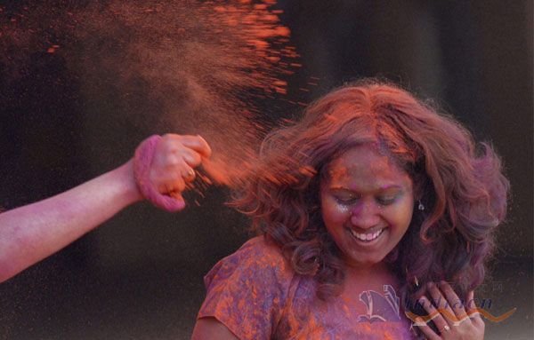 每年2月底或3月初,即印度历12月的月圆之夜,印度教的传统大节胡里节(也叫洒红节)就要开始了。上至达官显贵,下至寻常百姓,都载歌载舞,尽情地用五彩缤纷的颜色装扮起来,迎接春天的到来。到时候,印度人为了表示喜庆和祝福,会向人们身上泼洒五颜六色的颜料。如果不小心中招,衣服就毁了。颜色粉末弄进眼睛里会十分难受。所以,身为外国人,胡里节那天最好别出门。”