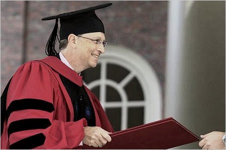 我要感谢哈佛大学在这个时候给我这个荣誉。明年,我就要换工作了(注:指从微软公司退休)……我终于可以在简历上写我有一个大学学位,这真是不错啊。
